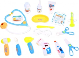 Stethoscoop, thermometer, otoscoop, bloeddrukmeter, spuit, schaar, scalpel, bril en meer accessoires – alles voor compleet doktertje spelen.