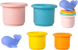 .Als je kind van zee-avonturen houdt en graag in het zwembad of bad speelt, is dit speelgoed ideaal. Als je kind zich tegen elke badtijd verzet, zal deze set hem of haar overtuigen, de aandacht afleiden en badderen voortaan met plezier verbinden. Het lachende kikkertje met verschillende effecten boeit je kleintje zo dat het niet meer uit bad wil. Een schattig drijvend schip en een walvis ondersteunen het spel. Verbeter de observatievaardigheden, het geheugen, de verbeelding en het denken van je kind! Het leuke stapelen stimuleert de tastzin en helpt het verschil tussen de bekers te begrijpen.