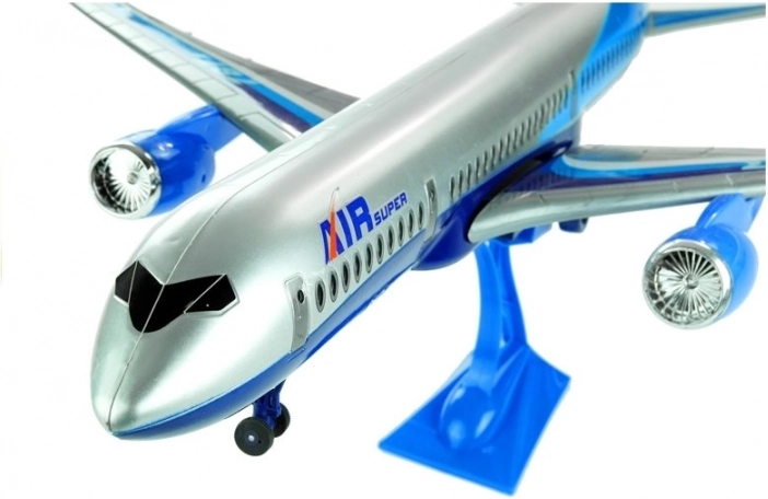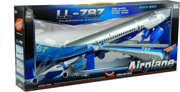Het gepresenteerde vliegtuig kenmerkt zich door een slank, gestroomlijnd design. De klassieke, karakteristieke glanzende grijze kleur is gecombineerd met verschillende tinten blauw – deze zijn onder andere te vinden op de staart van het vliegtuig, maar ook op de motoren en de grote vleugels. Dankzij details zoals gekleurde strepen, evenals de opdruk AIR SUPER en de aanduiding 787, ziet het vliegtuig eruit als een echt exemplaar, wat de verbeelding van kinderen prikkelt. Het vliegtuig is met aandacht voor de fijnste details gemaakt. In de constructie zitten deuren naar de cockpit en ook ramen voor passagiers – zo kunnen ze naar binnen kijken. Het vliegtuig staat op twee paar wielen – het eerste, kleinere paar is inklapbaar, terwijl het tweede een frictie-aandrijving heeft. De kunststof wielen hebben een geprofileerde structuur, zodat spelen met het vliegtuig zelfs op oneffen terrein een fluitje van een cent is.