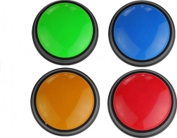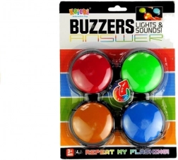 De knoppen hebben drie verschillende geluiden (groen en rood hebben hetzelfde geluid), die worden geactiveerd wanneer het licht wordt ingedrukt. Tijdens het spelen kun je onder andere geluiden horen die doen denken aan een politienesirene, geheime dienst of triomf. We zijn ervan overtuigd dat de verscheidenheid aan kleuren en geluiden die uit de onderdelen van het speelgoed komen, iedereen zal aanzetten tot veelzijdig gebruik. De enige beperking is je fantasie – de zoemerlichtjes kunnen zowel thuis bij spelletjes en spelen worden gebruikt als op school, waar ze als bakens voor alle deelnemers dienen. Deze set is een geweldige manier om de behendigheid en reflexen van je kind te verbeteren, omdat hij kan worden gebruikt voor een spel waarbij je de ingedrukte kleuren onthoudt en vervolgens de volgorde naspeelt.