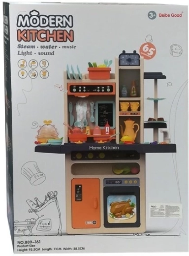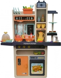 Dit moderne kinderkeukentje valt op door de rustgevende combinatie van oranje en crème en het design dat aan een echte keuken doet denken. Dankzij de lichtelementen op de kookplaat en realistische kookgeluiden kruipen kinderen in de rol van kleine chef-kok. Praktische planken, haken en vakken helpen orde te houden en organisatievaardigheden te ontwikkelen.
