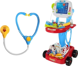 Deze doktersset op een trolley is ideaal voor kleine fans van doktertje spelen. Kinderen genieten van realistische accessoires en licht- en geluidseffecten die hun verbeelding prikkelen en hen in staat stellen echte onderzoeken na te bootsen. De stabiele constructie, twee opbergplanken en handgreep maken het makkelijk om alle hulpmiddelen te verplaatsen.
