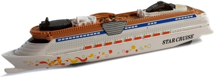Het model is gemaakt van kunststof onderdelen met maximale zorg en aandacht voor detail. Aan de onderzijde van de boot bevindt zich het batterijvak en de schakelaar voor licht en geluid, die de kleine reiziger meeneemt naar de wereld van maritieme avonturen. De voor- en achterzijde van de rondvaartboot zijn uitgerust met blauw oplichtende LED-diodes, zodat er zelfs in het donker kan worden doorgespeeld. Als bonus zijn aan de onderkant van de boot 4 wieltjes gemonteerd, zodat hij over de vloer, het tapijt, overal in huis kan bewegen.