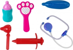 De set bevat een schattig pluchen hondje dat geluid maakt wanneer je op het buikje drukt. Verder inbegrepen: een stethoscoop, thermometer, spuit, borstel, voedingsflesje, laryngoscoopspiegeltje en noodgips voor het pootje (2 stuks). Alles is ontworpen voor veilig en leuk spel voor kinderen vanaf 3 jaar.