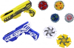 Deze dynamische set brengt een spannende vaardigheidsstrijd: laad de schijf in de lanceerder, richt en laat hem los in de arena. Metalen schijven draaien, botsen tegen elkaar en strijden om de overwinning – degene die als laatste in beweging blijft, wint. Lichteffecten versterken de visuele beleving en trekken bij elk spel de aandacht.