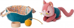 Katje Jeanne van LILLIPUTIENS is een superzacht knuffelspeeltje in een knus mandje dat uitnodigt tot zorgzaam spel. Kinderen kunnen haar aaien, aankleden, voeren uit het bakje en het bolletje wol toewerpen – zo trainen ze de fijne motoriek en beleven ze hun eerste rol als “kleine verzorger”.