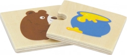 - 24 houten stukjes met illustraties van dieren en hun voedsel