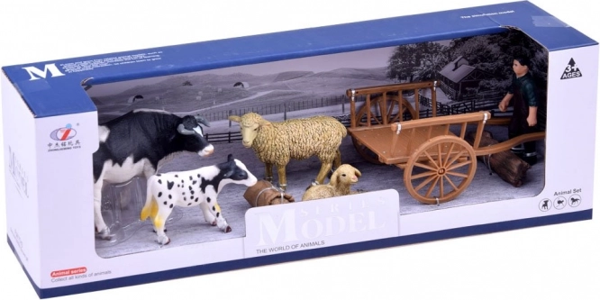 Set boerderijfiguren – handbeschilderde dieren en boer met accessoires – B