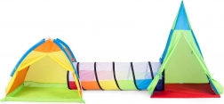 De set bevat een tunnel die dient om de tenten met elkaar te verbinden. Hij fungeert als een doorgang tussen de schuilplaatsen en biedt kinderen heel veel plezier tijdens het kruipen.