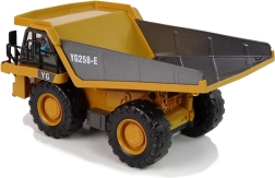Dit gedetailleerd uitgewerkte bouwvoertuig in speelgoedformaat combineert een gele uitvoering met zwarte details en realistische functies – van rijmanoeuvres vooruit/achteruit/links/rechts tot het heffen en laten zakken van de laadbak rechtstreeks via de controller. Dankzij de draadloze 2,4 GHz-technologie is de bediening vloeiend en storingsvrij; motorgeluiden en achteruitrijsignalering ontbreken niet.