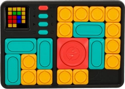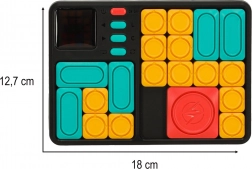 Dit elektronische schuifpuzzelspel test je geduld en vindingrijkheid. Het doel is om het rode blok naar de onderrand van het speelveld te krijgen door de overige stukjes te schuiven volgens de opgave op het LED-display – zonder blokjes op te tillen. Je wacht 500 slim samengestelde niveaus met oplopende uitdaging.