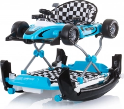 De multifunctionele 4-in-1 kinderloopstoel Car Racer is ideaal voor kinderen vanaf 6 maanden tot 12 kg die al zelfstandig kunnen zitten. Hij biedt de modi loopstoel, schommelstand, speelcentrum en duwauto voor de eerste stapjes. Dankzij de brede basis, drie hoogte-instellingen en zes veiligheidsstoppers zorgt hij voor stabiliteit en veiligheid. Het afneembare speelpaneel met geluiden en lichtjes stimuleert de zintuigen en motoriek en zorgt voor veel plezier.