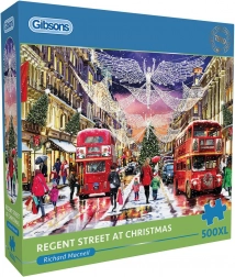Geniet van de feestelijke sfeer met de premium puzzel van GIBSONS. De illustratie van de iconische Regent Street in Londen zal zowel liefhebbers van Kerstmis als puzzelaars bekoren. Dankzij het XL-formaat zijn de stukjes groter voor comfortabeler hanteren en heeft de voltooide afbeelding indrukwekkende afmetingen. In de verpakking zit ook een voorbeeldposter voor eenvoudiger puzzelen. Hoogwaardige druk en nauwkeurig uitgesneden stukjes zorgen voor vloeiend puzzelen, levendige kleuren en plezier van het voltooide beeld.