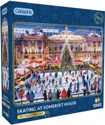 Puzzel "Schaatsen bij Somerset House" van het prestigieuze merk Gibsons belichaamt wintercomfort en de magie van Kerstmis. In de fascinerende illustratie van Richard Macneil kun je schaatsers zien glijden op de ijsbaan, die prachtig verlicht is met kerstverlichting en omringd wordt door kraampjes met warme dranken en lekkernijen. Dit motief brengt de sfeer van een Londense kerst-sprookje in je huis.