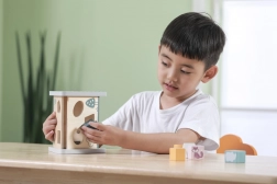 Het speelgoed is gemaakt van hoogwaardig gelakt hout en gekleurd met niet-giftige, veilige verven in moderne, polaire tinten. Ideaal voor dagelijks spelen thuis en in de kinderopvang – de duurzame constructie, gladde randen en doordacht design ondersteunen de ontwikkeling van verbeelding en creativiteit.