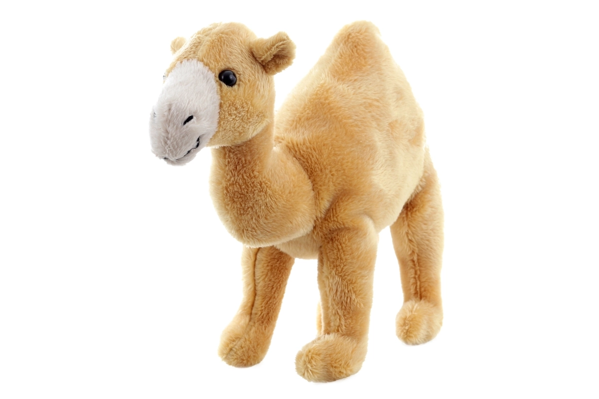 Pluchen dromedaris met afmetingen 20×17×6 cm. Leeftijd 0+