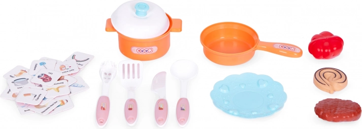 Pannen, koekenpan, bordjes, bestek en etenswaren aangevuld met een puzzel die het juiste scheiden van afval leert – plezier gecombineerd met leren.