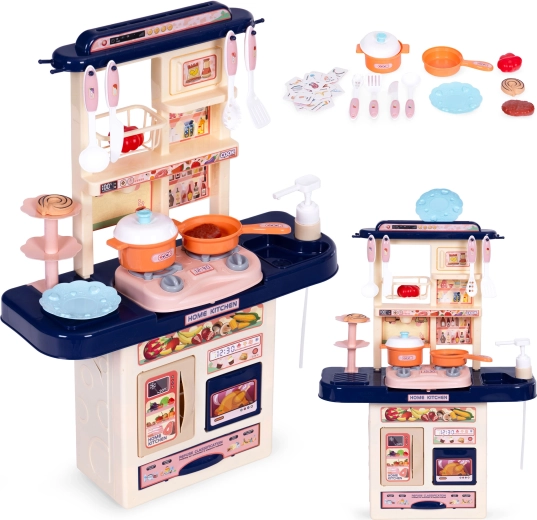 Stijlvolle kinderkeuken met realistische geluiden en LED-verlichting van de kookpitten biedt kinderen vanaf 3 jaar uren speelplezier. Inclusief functionele gootsteen met kraan, draaiknoppen met klikgeluid, open kastjes en een lade met afvalscheidingspuzzel. In de set vind je 10 accessoires, waaronder een pan, koekenpan en etenswaren. Het veilige ontwerp zonder scherpe randen stimuleert fantasie en fijne motoriek.