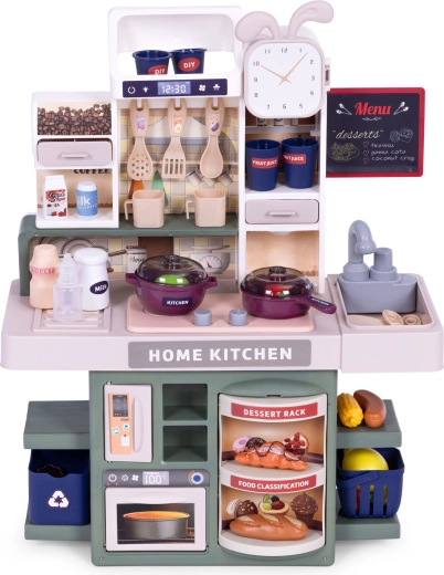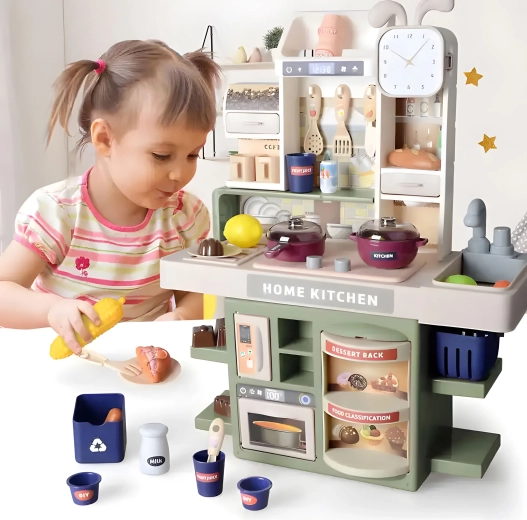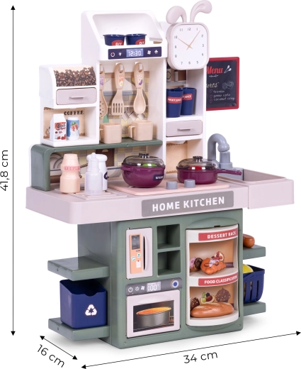 Ieder kind kijkt graag, imiteert en helpt volwassenen bij alledaagse bezigheden. Dankzij de keuken kan je kind koken naspelen en lekkere gerechten bereiden voor het hele gezin. Het speelgoed leert kookprincipes, stimuleert creativiteit en fijne motoriek.