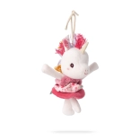 Leuk textiel vibrerend speeltje voor kinderen vanaf 6 maanden. Wanneer kinderen aan de beentjes trekken, begint de eenhoorn vrolijk te dansen. Geweldige pret en een verrassend gevoel voor kleine handjes! Het speeltje kan worden opgehangen aan autostoeltjes, kinderwagens of het ledikant. De dansende eenhoorn trekt de aandacht van kinderen met beweging en geluid en stimuleert zo hun zintuigen.