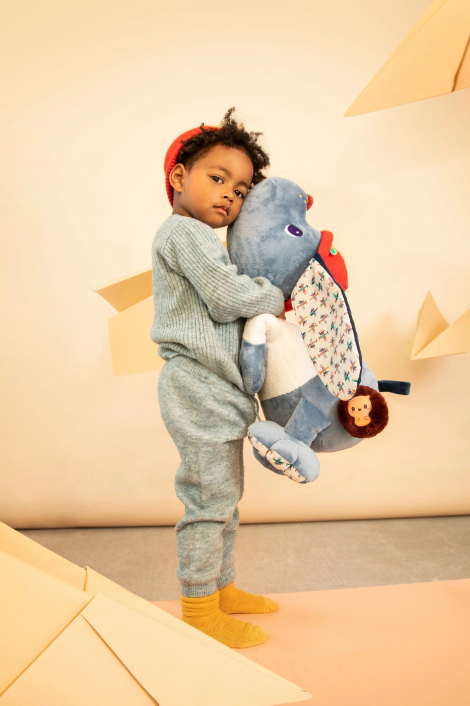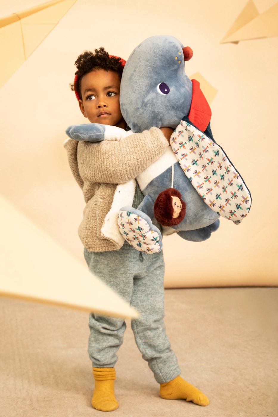Materiaal: 100% gerecycled polyester, vulling van 100% gerecycled polyester. De afmetingen van de knuffel zijn 55 x 22 x 26 cm. Handwasbaar.