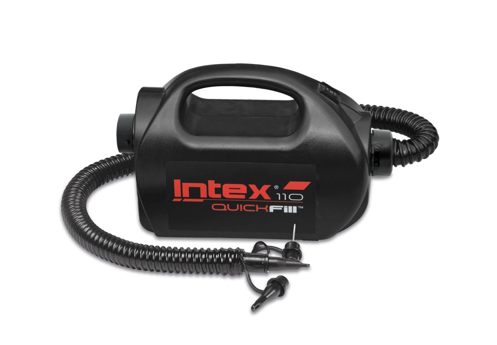 De universele elektrische pomp Intex Quick-Fill versnelt het opzetten van matrassen, zwembaden, boten en andere opblaasartikelen. De dubbele voeding 12 V/230 V laat je de pomp zowel thuis als in de auto op vakantie of tijdens het kamperen gebruiken. De compacte behuizing met handig handvat en de flexibele slang maken het bedienen eenvoudig.