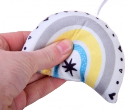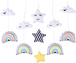 Deze mobiel biedt niet alleen visuele, maar ook akoestische stimulatie dankzij de melodie die speelt tijdens het draaien van 360 graden. Hij heeft een praktische ON/OFF-schakelaar voor eenvoudige bediening. Gemaakt van hoogwaardige kunststof; de pluche hangers kunnen eenvoudig worden verwijderd en gewassen, wat het onderhoud vergemakkelijkt.