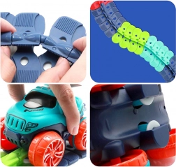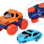 In de verpakking zit een chassis voor het autootje en twee verwisselbare carrosserieën in twee kleuren (oranje en turquoise), zodat je de look van je racer eenvoudig kunt aanpassen. Achterwielen met rubberen banden zorgen voor betere grip en een soepele rit, ook op veeleisendere delen van de baan.