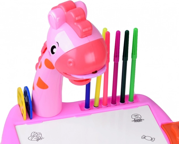 De projectietekentafel Giraffe is ideaal voor jonge kunstenaars. De projector projecteert beelden op het tekenvlak, die het kind eenvoudig kan overtrekken en inkleuren. Dankzij de compacte afmetingen kan het bord op een tafel worden gebruikt of op de meegeleverde pootjes worden gezet als kleine tekentafel voor kinderen.