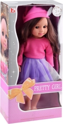 De elegante pop van 36 cm is een ideale metgezel voor jonge dames. Dankzij het lange, bruine, golvende haar dat kam- en stylebaar is, bevordert zij het modegevoel van kinderen en ontwikkelt zij vaardigheden in haarverzorging. Ze draagt een stijlvolle roze blouse en een paarse rok, en samen met roze schoentjes en een muts biedt ze een elegante uitstraling. Beweegbare armen en benen maken het eenvoudig om de pop in verschillende poses te zetten, wat creatief en fantasierijk spel ondersteunt.
