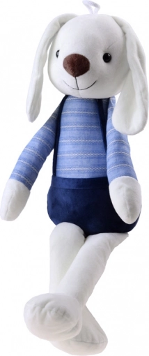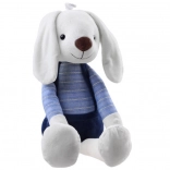 Een schattig pluchen konijntje van 60 cm hoog, gemaakt van een extra zachte en aangename stof. Het heeft kunststof oogjes, een geborduurd neusje en een charmante glimlach. Gekleed in een gestreept T‑shirt en een tuinbroek is het de ideale speelkameraad voor spelen, voorlezen en knuffelen voor het slapengaan.