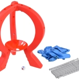 - Inhoud van de doos: frame met basis, 10 ballonnen, 9 kunststof stokjes, dobbelsteen, handleiding