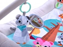 Deze schattige en zachte speelmat in zachte tinten met contrasterende graphics is ideaal voor de allerkleinsten. De verhoogde zachte randen verhogen de veiligheid bij het rollen, terwijl de afneembare babygym met ringen het eenvoudig maakt om speeltjes toe te voegen of te wisselen. Dankzij het veilige spiegeltje, de rammelaars en de knisperende elementen wordt je kindje vermaakt en tegelijk zintuiglijk geprikkeld.