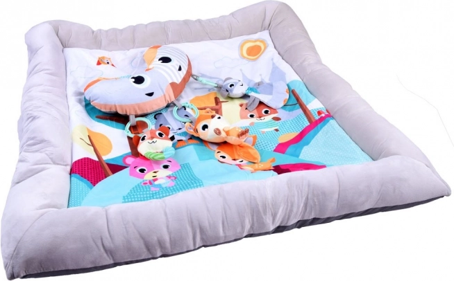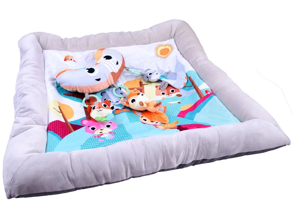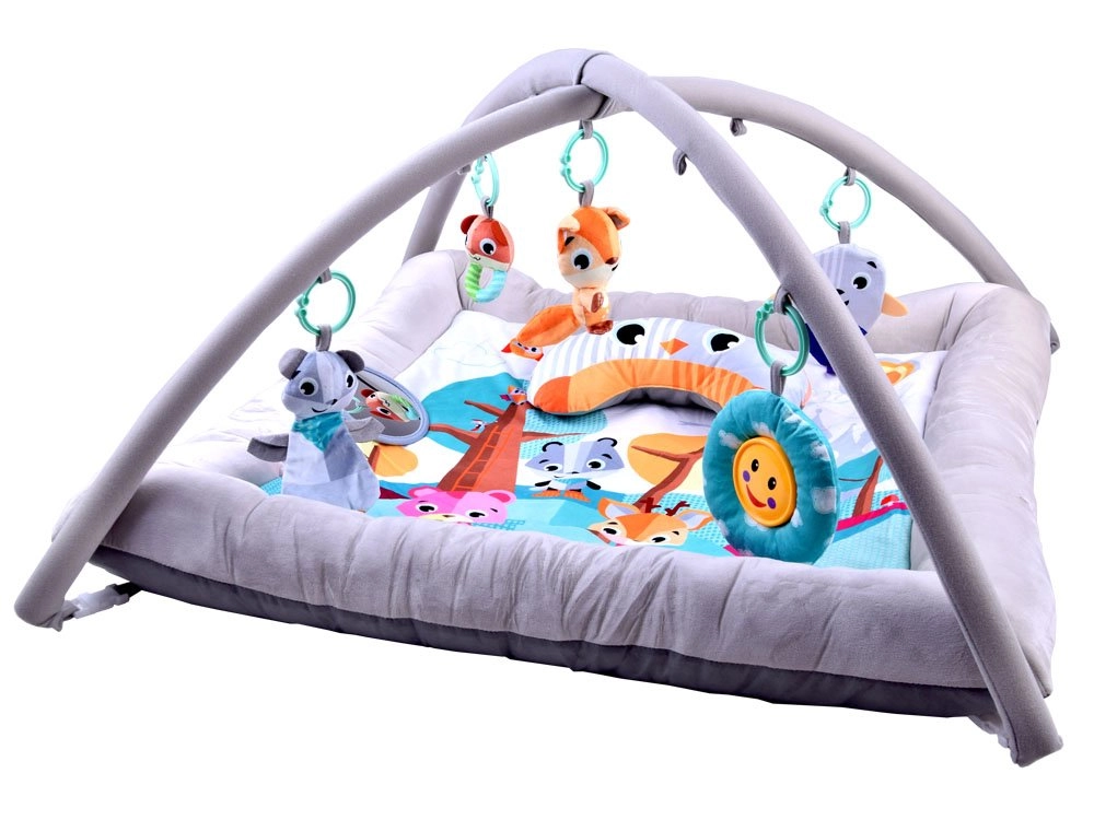 De set bevat stoffen diertjes met verschillende texturen en geluiden, een zonnetje met rustgevende melodie, een spiegeltje en een zacht kussentje ter ondersteuning van het hoofdje of tijdens tummy time. De mat ondersteunt het herkennen van vormen en kleuren, het leren van oorzaak–gevolg en de coördinatie van bewegingen.