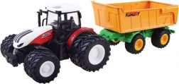 Leuke RC-tractor met aanhanger op 2,4 GHz met volledige afstandsbediening (vooruit/achteruit, links/rechts), lichteffecten en grote rubberen wielen voor uitstekende grip. De kiepbare aanhanger met openende achterklep kan veel lading aan en is in een handomdraai los te koppelen. De oplaadbare accu in de set verlaagt de gebruikskosten – sluit gewoon aan via de USB-kabel en op naar de boerderij!