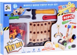 In de set zitten ook kinder-gereedschappen – sleutels, schroevendraaier, hamertje en schuifmaat – en een stap-voor-stap handleiding met afbeeldingen die helpt bij de eerste bouwwerken. De bouwset stimuleert gezamenlijk familieplezier en is een geweldig cadeau voor kinderen vanaf 3 jaar.
