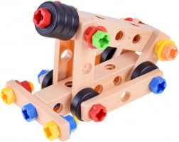 Deze creatieve bouwset is een ideale keuze voor jonge constructeurs. Dankzij het doordachte systeem van gaten in “houten” kunststof latjes en de kleurrijke schroeven kunnen onderdelen eenvoudig worden verbonden en stabiele modellen worden gecreëerd. Tijdens het spelen oefenen kinderen hun oog-handcoördinatie, vaardigheid en geduld.