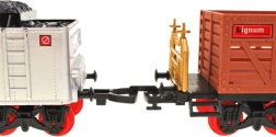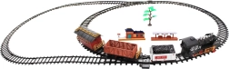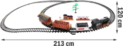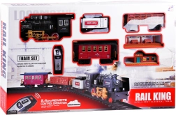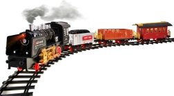 Deze zorgvuldig uitgewerkte elektrische modelspoorbaan zal zowel kleine als grote spoorwegliefhebbers bekoren. De stoomlocomotief brandt met de frontlamp tijdens het rijden, produceert geluiden van een echte trein en maakt na het bijvullen van water rook uit de schoorsteen. Dankzij de afstandsbediening heb je snelheid en richting altijd onder controle.