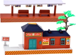 Bouw een baan van 213 × 120 cm uit 22 raildelen, voeg het station, wachtruimte en bomen toe en creëer je eigen spoorwegscène.