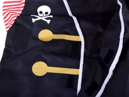 De set bevat alles wat een kleine piraat nodig heeft: een veilig plastic zwaard, een inklapbare kijker voor “uitkijk op het dek”, een ooglapje en een comfortabele hoed. Het kostuum is ontworpen voor makkelijk aan- en uittrekken en comfortabel dragen, zodat kinderen urenlang kunnen spelen.