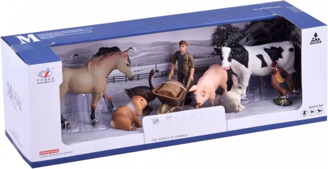 Inhoud van de set: koe, paard, haan, biggetje, haasje, konijn, gans en boer met kruiwagen. Elk figuur is handbeschilderd en klaar om eindeloze scènes en verhalen te creëren.
