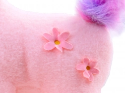 Geborduurde ogen, een hartje op het wangetje en bloemetjes op de flank zijn duurzaam en zonder kleine losse onderdelen.