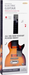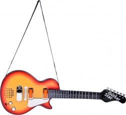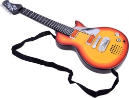 Deze stijlvolle elektrische gitaar in een energieke oranje-zwart kleurstelling is een uitstekende keuze voor kinderen die van muziek houden. De metalen snaren reageren op aanraking en in combinatie met de knipperende oranje lichtjes onder de snaren ontstaat bij elk optreden een aantrekkelijke show.