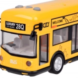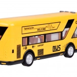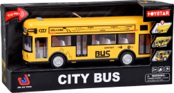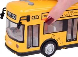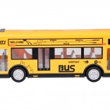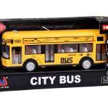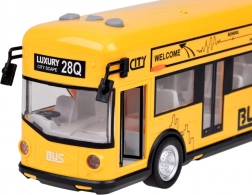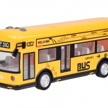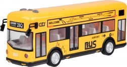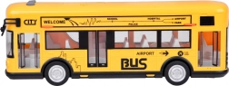 Deze gedetailleerd uitgevoerde stadsbus in opvallend geel is gemaakt van hoogwaardig kunststof en klaar voor dagelijks kinderspel. Hij heeft knoppen op het dak die alarm, een ritmische melodie en geluiden van openen, starten en draaiende motor activeren. Tijdens de geluidseffecten knippert binnenin een witte LED, wat de authenticiteit vergroot.