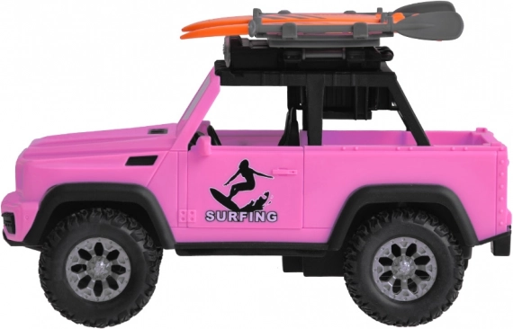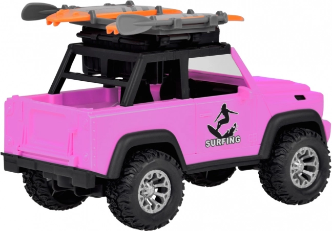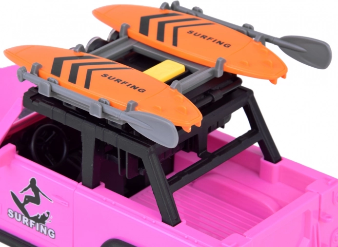 Roze terreinwagen met surfplanken en geluiden voor kinderen