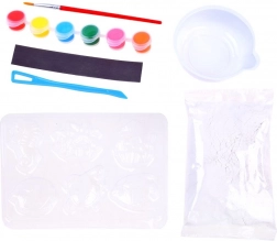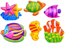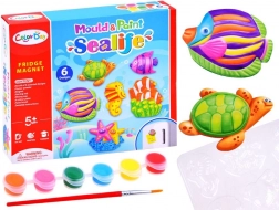 De 'doe-het-zelf' creatieve set voor het maken en schilderen van magneten is een ideaal cadeau voor kinderen met een artistieke ziel. De set biedt de mogelijkheid om 6 verschillende magneten met onderwaterwezens te maken, zoals vissies, een zeepaardje, sterren en een schildpad. Kinderen kunnen gips gieten volgens hun fantasie en deze vervolgens verven.
