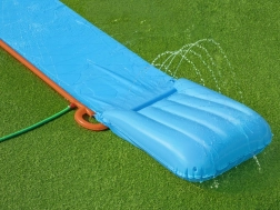 Waterglijbaan Tsunami van Bestway is ontworpen om maximaal plezier te bieden dankzij de lange gestructureerde glijbaan, die over de gehele lengte wordt besproeid door waterstralen.