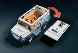 Vier 50 jaar PLAYMOBIL met een speciale uitgave van de geliefde politiethema-set. De geldtransportwagen, een brutale oplichter en een snelle motor zorgen voor spannende scènes vol actie. Dankzij het afneembare dak en de te openen achterdeuren verloopt het spel soepel en dynamisch.
