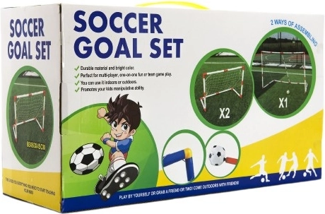Sportset die eindeloze uren plezier op uw tuin biedt. Kinderen kunnen gemakkelijk het doel monteren, het net spannen en beginnen met spelen. Deze set is zeer flexibel, het creëert twee kleinere doelen of één grotere. Wat uw kleine voetballers ook prefereren!