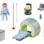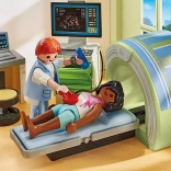 Radioloog met patiënt tijdens een MRI-onderzoek. De set bevat een MRI-apparaat met tafel, diagnostische monitor en veel extra accessoires. Je kunt hem combineren met andere PLAYMOBIL-ziekenhuissets. Dankzij de gedetailleerde PLAYMOBIL-set kunnen kinderen een bezoek aan de radioloog naspelen. Net als in het echte leven wordt de patiënt op een speciale tafel in de MRI geplaatst.